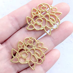 Rose Bouquet Open Back Bezel Charm | Floral Deco Fra...