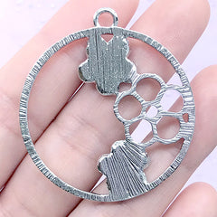 Hydrangea Bouquet Open Bezel Charm | Flower Deco Fra...