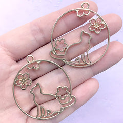 Kitty and Sakura Circle Open Bezel Charm | Flower an...