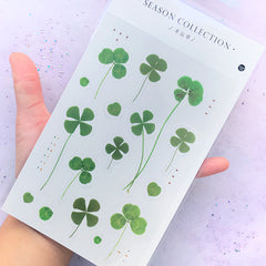 Four Leaf Clover Stickers | Realistic Pressed Leaves...