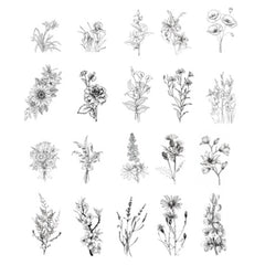 Flowers and Leaves Drawing Stickers in Black and Whi...