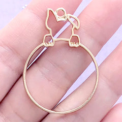 Kawaii kitty and round frame open back bezel charm / pendant. Great to be used as it is or fill it up with resin, confetti, glitters, rhinestones,...