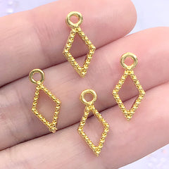 Beaded Rhombus Open Bezel for UV Resin Filling | Mini Geometry Deco Frame | Kawaii Resin Crafts (4 pcs / Gold / 7mm x 15mm)