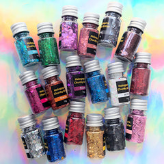Beautiful set of hexagon and fine glitter powder in various sizes and colors. Perfect for any decorations such as nail art, resin cabochon making, mixed media art,...