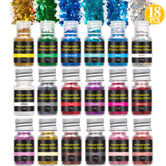 Chunky Glitter Assortment (Set of 18) | Iridescent Hexagon Confetti and Glitter Powder in Various Sizes | Resin Craft | Nail Art