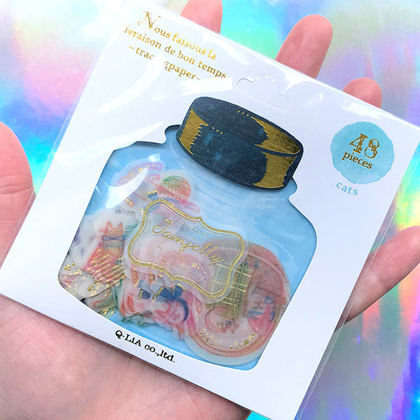 Cute Cat Sticker Flakes | Animal Deco Stickers | Planner Decoration | Scrapbooking Supplies (8 Designs / 48 Pieces)