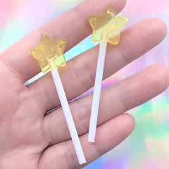 Faux Candy Cabochon | Fake Star Lollipop | Sweets Deco | Kawaii Food Jewelry Making (2 pcs / Yellow / 19mm x 60mm)