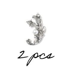 Flower Nail Charm with Pearl and Rhinestone | Floral Metal Embellishment | Nail Art Supplies (2 pcs / Silver / 9mm x 16mm)
