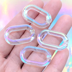 Holographic Clear Oval Links | Iridescent Acrylic Open Chain Links | Chunky Accessory DIY | Plastic Clutch Bag Chain Making (4 pcs / AB Clear / 17mm x 27mm)