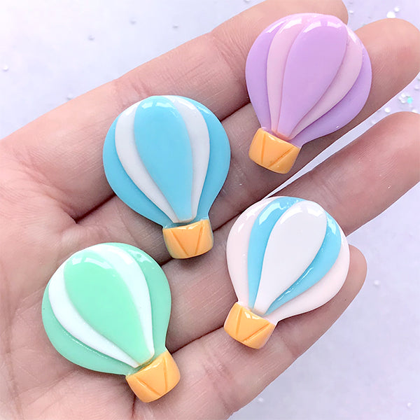 Kawaii hot air balloon cabochons. Excellent for phone case decoden project, mixed media art, scrapbooking, party supplies, kawaii jewelry and accessories making, etc. Quantity: 4 pcs...