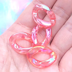 Iridescent Acrylic Chain Links | Plastic Open Links | Chunky Accessories Making | Kawaii Purse Chain DIY (4 pcs / AB Red / 17mm x 23mm)