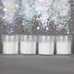 Iridescent White Glitter in Hexagon, Bar and Powder (4 pcs) | Assorted Confetti Glitters | Resin Filling Material | Bling Bling Nail Decorations