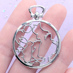 Kawaii Alice in Wonderland Pocket Watch Open Bezel Pendant | Alice and White Rabbit Deco Frame for UV Resin (1 piece / Silver / 34mm x 44mm)