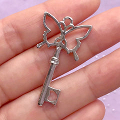 Magical Key Open Bezel Charm for UV Resin Filling | Butterfly Deco Frame | Kawaii Craft Supplies (1 piece / Silver / 21mm x 39mm)