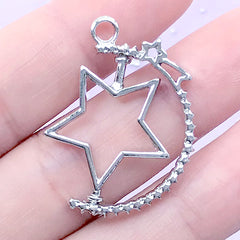 Movable Star Open Bezel Charm with Shooting Star | Spinning Pendant | Magical Deco Frame for UV Resin Filling (1 piece / Silver / 24mm x 31mm)