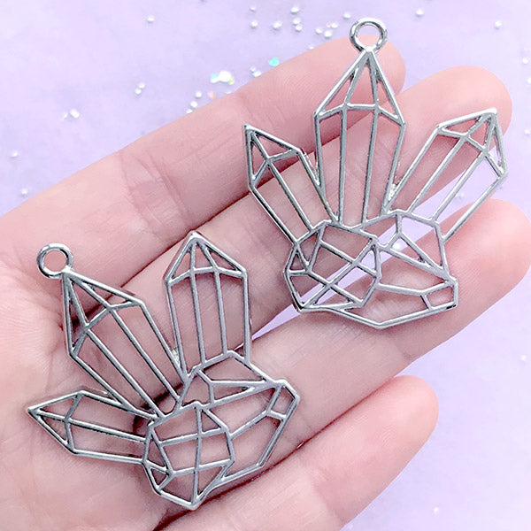Pointed Quartz Open Backed Bezel Charm | Crystal Shard Deco Frame for UV Resin Filling | Resin Jewelry Making (2 pcs / Silver / 37mm x 44mm)