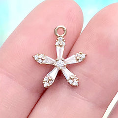 Rhinestone Floral Charm | Flower Pendant | Dainty Jewellery Supplies (1 piece / Gold / 13mm x 15mm)