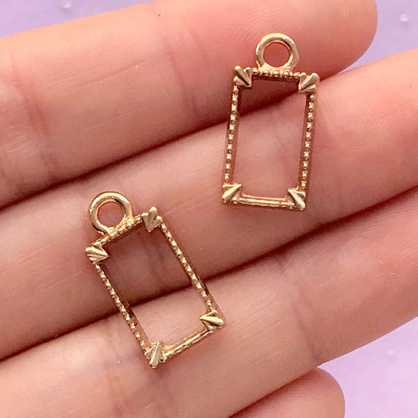 Small Rectangle Frame Open Back Bezel Charm | Rectangular Deco Frame for UV Resin Filling (2 pcs / Gold / 10mm x 19mm)