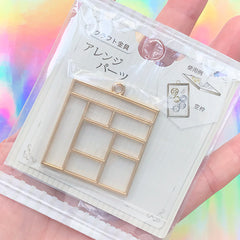 Square Geometric Open Bezel Charm for UV Resin Filling | Geometry Deco Frame for Resin Jewelry DIY (1 piece / Gold / 37mm x 42mm)