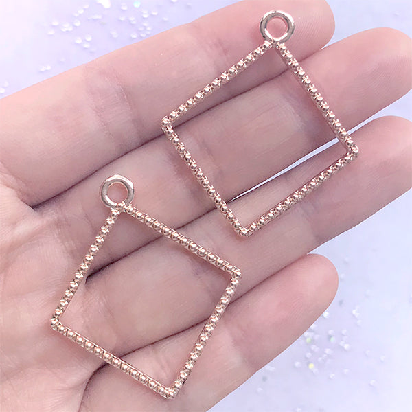 Square Open Back Bezel Pendant with Beaded Border | Deco Frame for UV Resin Filling | Geometry Jewellery Making (2 pcs / Rose Gold / 33mm x 38mm)