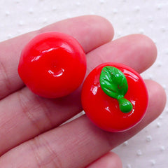 3D Apple Cabochons (2pcs / 20mm x 18mm / Red) Kawaii Phone Case Decoden Whimsical Jewellery Dust Plug Making Kitsch Embellishment FCAB317