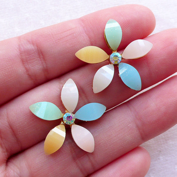 Colorful Flower Metal Cabochon with Gems (2pcs / 22mm / Flat Back) Hair Bow Centers Flower Decoden Wedding Jewellery Table Scatter CAB551