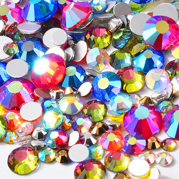 Sparkle AB glass rhinestones in various size. Excellent for phone case decoden, nail art, jewelry and accessories making and all kinds of decorations, etc.