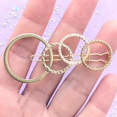 Geometry Hair Clip with Round Deco Frame | Geometric Open Bezel for UV Resin Filling | Hair Jewellery DIY (1 piece / Gold / 28mm x 60mm)