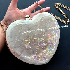Heart Shaker Clutch Handbag Silicone Mold with Findings | Kawaii Clear Bag Making | Resin Art Supplies (16.5cm x 15cm)