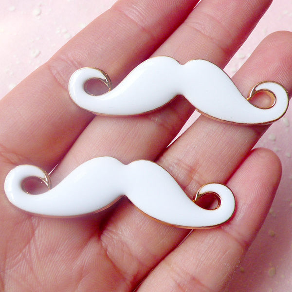 Metal Mustache Cabochon / Kawaii Moustache Charm (2pcs / 48mm x 13mm / White) Kitsch Jewelry Whimsical Decoration Decoden Supplies CAB320