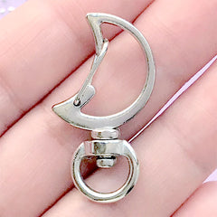 Moon Snap Clip with Swivel Ring | Kawaii Bag Charm Making | Cute Keychain Findings | Lanyard Hook Clasp (1 piece / Silver / 18mm x 34mm)