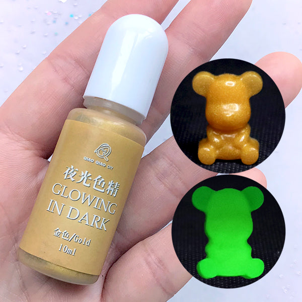 Phosphorescent Colorant for UV Resin Craft | Glow in the Dark Dye | Epoxy Resin Pigment | Resin Craft Supplies (Gold / 10ml)
