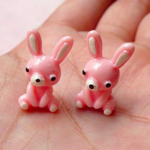Pink Rabbit / Pink Bunny Cabochon (2pcs / 10mm x 18mm x 11mm / 3D) Kawaii Earphone Plug Making Dollhouse Amimal Miniature Garden CAB352