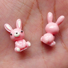 Super cute miniature 3D pink rabbit / bunny cabochon. So detailed and kawaii! Great for cell phone deco (decoden), earphone plug making, scrapbooking, kitsch jewelry making, any kinds of deco, etc