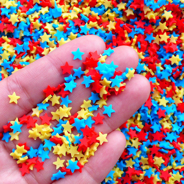 Polymer clay star sprinkles in colorful mix. Excellent for fake food and miniature sweets making, as well as kawaii phone case decoden, resin crafts, etc.