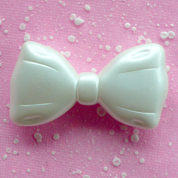 Resin Bow Cabochon Large Bowtie Cabochon (53mm x 29mm / White) Big Decoden Cabochon Cute Embellishment Kawaii Craft Bow Tie Decor CAB036