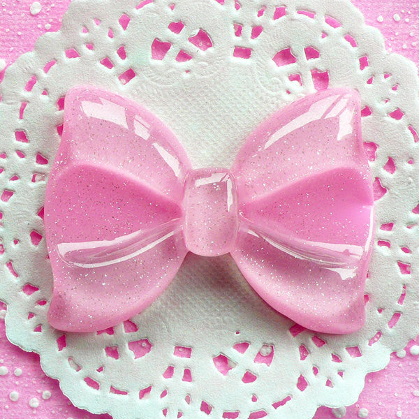 CLEARANCE Resin Cabochon Bowtie with Glitter (60mm x 44mm / Pink / Flat Back) Jumbo Cell Phone Deco Cabochon Kawaii Lolita Bow Tie Cabochon CAB042