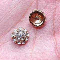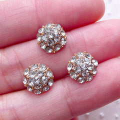 Rhinestones Pave Cabochon (3pcs / 10mm / Gold & Clear) DIY Hair Bow Headbands Embellishment Bling Decoration Fabric Flower Centers CAB509