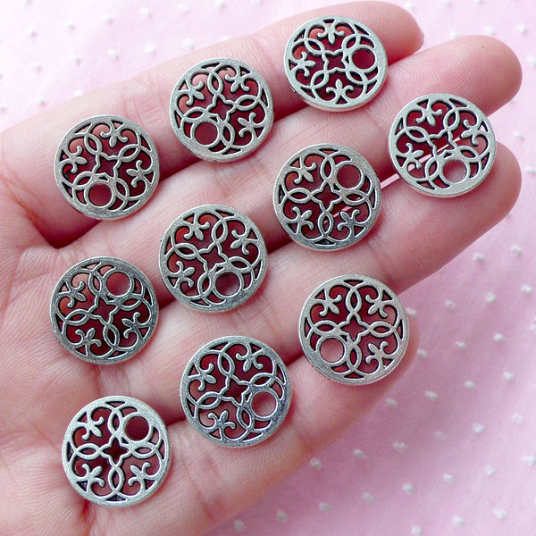 Round Filigree Charms (10pcs / 15mm / Tibetan Silver / 2 Sided) Everyday Jewelry Bracelet Link Charm Connector Charm Bookmark Charm CHM1845