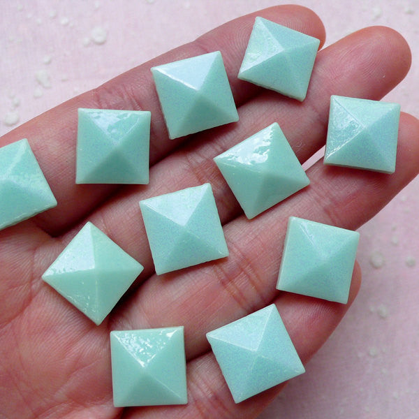 Square Pyramid Cabochons (10pcs / Blue Green / 12mm / Flat Back) Flatback Resin Rivet Scrapbooking Kawaii Cell Phone Deco Decoden CAB393