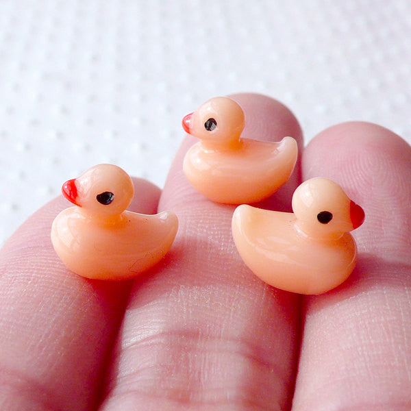 Terrarium Bathing Duck Cabochon in 3D (7mm x 9mm / Salmon / 3pcs) Miniature Animal Cabochon Kawaii Decoden Phone Case Kitsch Jewelry CAB502