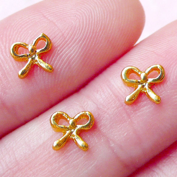 Tiny Ribbon Cabochon (3pcs) (6mm / Gold) Fake Miniature Cupcake Topper Nail Art Nail Decoration Scrapbooking NAC190